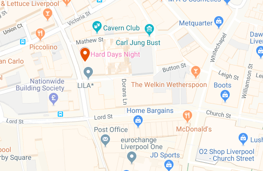 Located at the heart of Liverpool’s ‘Cavern Quarter’, the hotel is ideally located next to The Cavern Club and is a 10 minute walk to The Adelphi Hotel.
